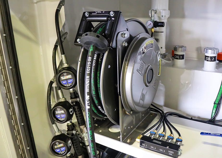 Save time and increase productivity by using a mobile lube trailer to perform routine preventative maintenance on your equipment in the field. Plus, lube skids are more affordable than a dedicated lube service truck. Increase the versatility of a service truck by mounting in the truck bed with reels accessible from a compartment or reel box.