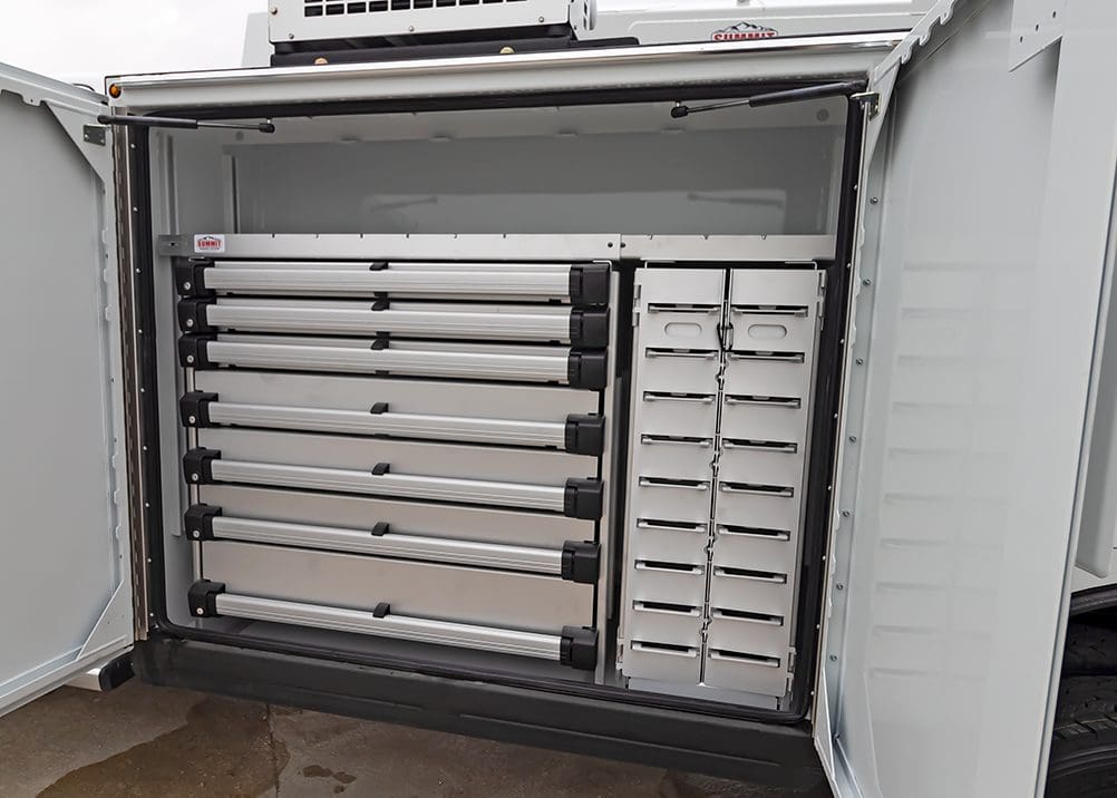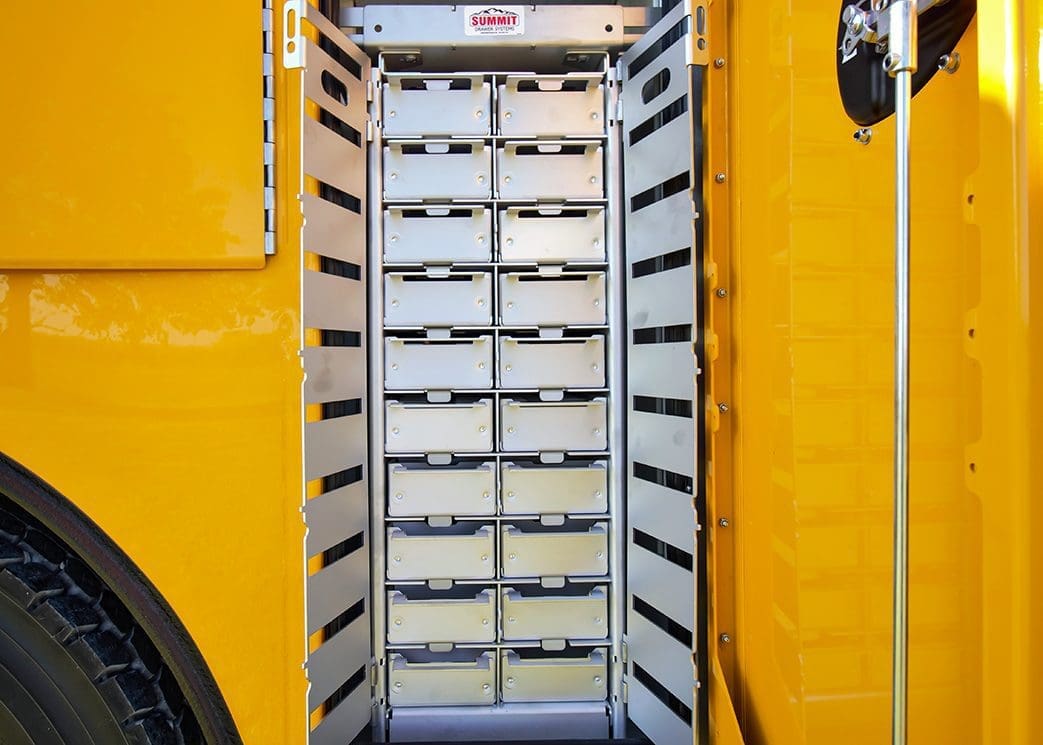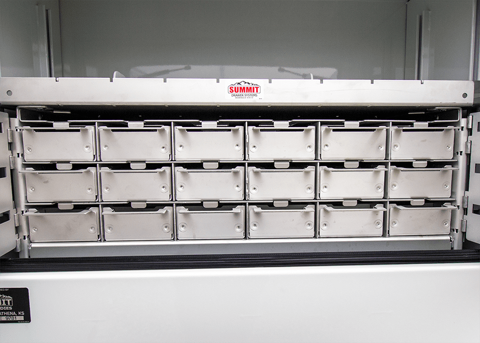 Making the most of your service truck storage space helps ensure you arrive at the job site prepared to do the job. And keeping small parts organized and easily accessible improves efficiency. Therefore, Summit Drawer Systems bolt bins come with standard features to maximize and manage storage space. And we’ve designed the bolt bins to be durable with easy-to-use pull-out drawers.